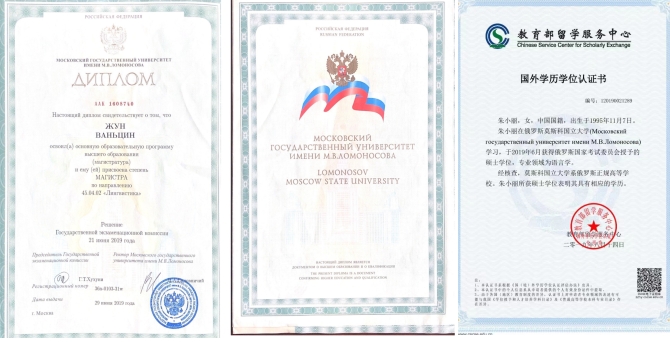 俄罗斯莫斯科国立大学硕士研究生毕业证书展···